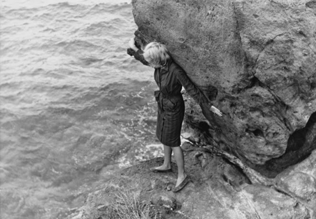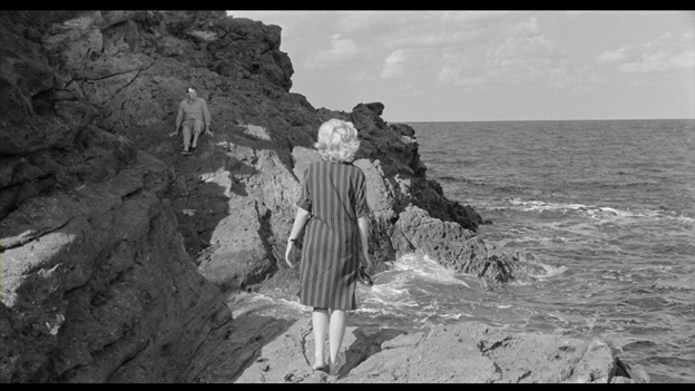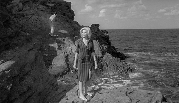 Actors should be placed in the natural setting as part of the landscape, as it reflects their inner lives – a mystery, of secrets, and a primal power of the cold ocean. For cinematographic reference, check out these stills from Michelangelo Antonioni’s L’Avventura: